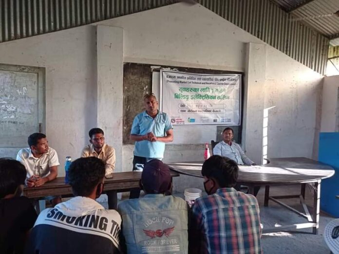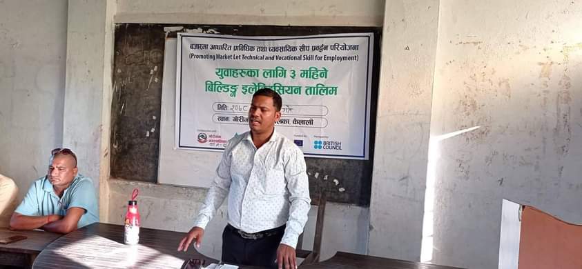 बजारमा आधारित प्राविधिक तथा व्यवसायिक सीप प्रवद्र्धन परियोजना अन्तर्गत ३ महिने जुनियर विल्डीङ्ग इलेक्ट्रीसियन तालिमको उदघाटन कार्यक्रम सम्पन्न भएको छ ।