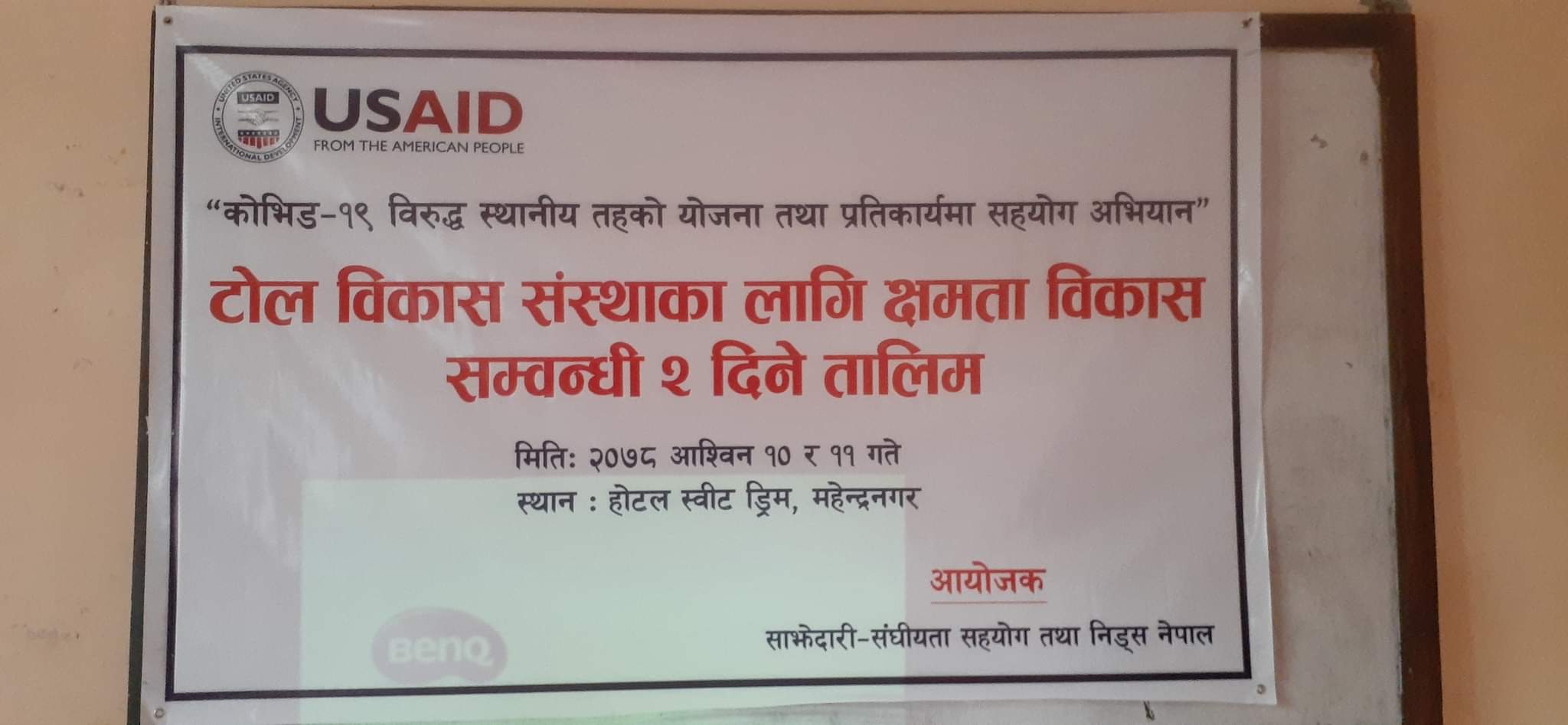 यु.एस.आइ.डी साझेदारी परियोजनाको “कोभिड–१९ विरुद्ध स्थानिय तहको योजना तथा प्रतिकार्यमा सहयोग अभियान ” अन्र्तगत सोमबार भीमदत्त नगरपालिका वडा न.४ अन्तर्गत रहेको शिवभक्त टोल विकास संस्थाका पदाधिकारी लगायत सदस्यहरु लाई नागरिक समाज ,टोल विकास संस्था ,वडा कार्यालय र नगरपालिकाको भुमिका बारेमा दुई दिने तालिम एक कार्यक्रमका बिच उक्त टोल विकास संस्थाका अध्यक्ष गोभिन्द सिंह विष्टको अध्यक्षतामा सम्पन्न भएको हो।