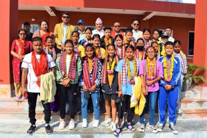 अखिल नेपाल फुटवल संघ (एन्फा) को आयोजनामा आयोजित फुटवल प्रतियोगितका लागि निलम सिंह,अस्मिता चौधरी,बिनिता कुमारी बोहरा, सिवाङ्गी स्नेही, बिपना स्नेही,गायत्री मल्ल, सीता रोकाया,निलम ओखेडा, भावना पातली, शोभा क्षेत्री ,यसु पाण्डेय,मनिसा ओखेडा,कान्ति पातली, पुष्पा पाण्डेय,तुलसी पातली,पुजा पातली, आशिका थापा,पुष्पा सिंह, पवित्रा दमाई र अनिता भट्ट खेलाडी सहभागि रहेका छन् । जसमा टिमको कप्तानको जिम्मेवारी निलम सिंह लाई दिएको छ। भने टिम प्रशिक्षकमा वकिल बहादुर सिंह ,लोक बहादुर पातली व्यवस्थापकमा नगर प्रवक्ता नरेश बहादुर सिंह,अफिसियल माया बोहरा, राम सिंह धामी र स्वास्थ्य कर्मी लक्ष्मी ऎर बुढा रहनु भएको छ।