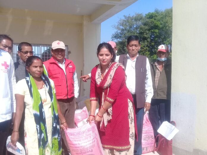 दोधारा । नेपाल रेडक्रस सोसाईटी र दलित महिला संघ (फेडो) ले दोधारा चाँदनीका बाढी प्रभावितलाई राहत सामग्री वितरण गरेका छन् । नेपाल रेडक्रस सोसाईटी र दलित महिला संघ (फेडो) ले उक कार्यक्रम संचालन गरि दोधारा चाँदनी नगरपालिका वडा नं. १० का बाढी पिडितहरुलाई खाद्य तथा गैरखाद्य बस्तु सहयोग गरेको हो । राहत सामग्री बितरण कार्यक्रममा दोधारा चाँदनी नगरपालिकाका नगर प्रमुख बिर बहादुर सुनार, नेपाल रेडक्रस सोसाईटी दोधारा उपशाखाका सभापती राजेन्द्र मल्ल, नेपाल रेडक्रस सोसाईटी जिल्ला शाखा कञ्चनपुरका मन्त्री रघुनाथ भट्ट, नेपाल रेडक्रस सोसाईटी चाँदनी उपशाखाका सभापतीजित बहादुर जिसी, दलित महिला संघ (फेडो) कञ्चनपुरका उपाध्यक्ष लक्ष्मी ताम्राकार लगाएत रेडक्रसकर्मी, बाढी पिडितहरुको बाक्लो उपस्थिती रहेको थियो ।