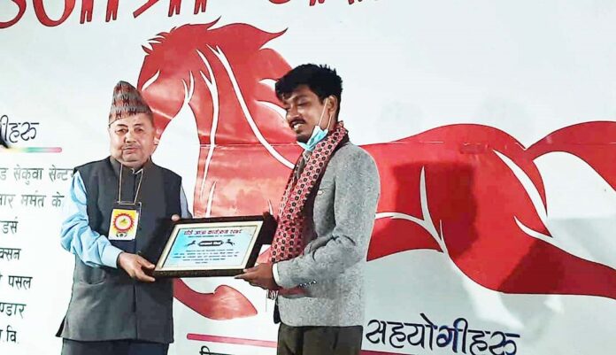 दोधारा । प्राथमिक स्वास्थ्य केन्द्र दोधाराका पुर्व डाक्टर गगन चौधरीलाई घोडे जात्रा कार्यक्रममा सम्मान गरिएको छ् । कोरोना नियन्त्रणको हिरो तथा एक असल डाक्टर भन्दै डाक्टर गगन चौधरीलाई दोधारा चाँदनी नगरपालिकामा वार्षिरुपमा तिहारको भोली पल्ट लाग्ने ऐतिहासिक घोडे जात्रामा सम्मान गर्दै मायाको चिनो प्रादन गरिएको हो । दोधारा चाँदनी नगरपालिका वडा नं. ९ देउराघाट मा बिगत लामो समय देखि तिहारको भोली पल्ट संचालन हुने घोडे जात्रा–२०७८ मा स्थानियहरुको बाक्लो उपस्थिती रहन्छ् । हिजो संचालन भएको रात्रीकालिन घोडे जात्रा कार्यक्रममा घोडे जात्रा–२०७८ ब्यवस्थापन समितिका अध्यक्ष बसन्त रोकायाको सभापतित्वमा हिजो संचालन भएको रात्रीकालिन घोडे जात्रा बिशेष कार्यक्रमका प्रमुख अतिथी कृषि तथा सहकारी राज्य मन्त्री मान बहादुर सुनार रहेका थिए भने बिशिष्ठ अतिथीमा दोधारा चाँदनी नगरपालिकाका नगर प्रमुख बिर बहादुर सुनार, उपप्रमुख चिनी ओझा गिरी रहेका थिए । अतिथीमा दोधारा चाँदनी नगरपालिकाका वडा अध्यक्ष, बिभिन्न राजनितिक दलका प्रतिनिधी, स्थानियहरुको बाक्लो सहभागिता रहेको थियो । प्राथमिक स्वास्थ्य केन्द्रमा रहेर जनताको सेवामा समर्पित भई कार्य गरेका ‘कोरोना नियन्त्रणको हिरो’ डा. गगन चौधरीलाई घोडे जात्रा कार्यक्रम –२०७८ मा सम्मान गरिएको आयोजकले जनाएको छ् ।