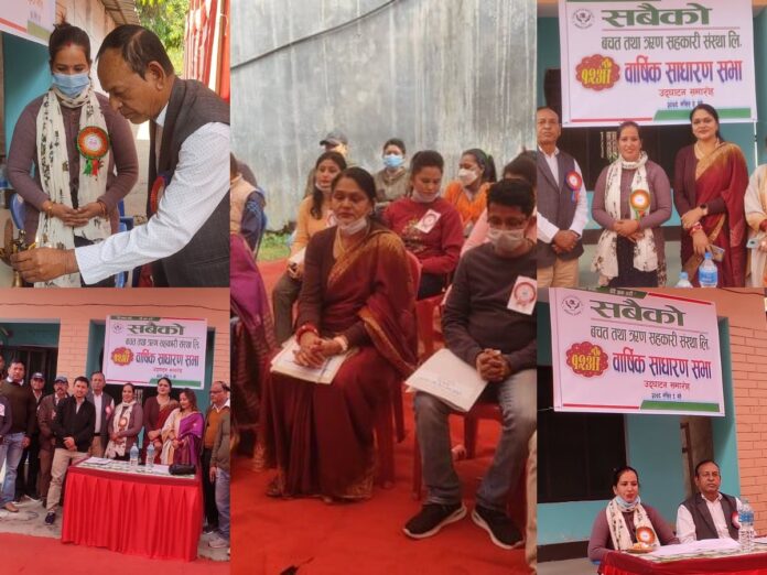 कञ्चनपुर: भीनपा १८ जानकीटोलमा स्थित सबैको बचत तथा ऋण सहकारी संस्था लि.को १२ औं वार्षिक साधारण सभा भव्यताका साथ सम्पन्न भएको छ । वि.सं. २०६६ साल मंषिर ८ गते देखि संचालन मा आएको उक्त संस्थाको आज स्थापना दिवस पनि हो ।