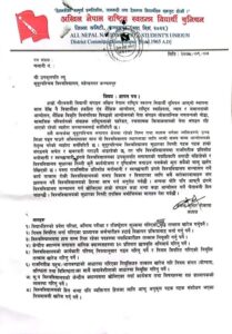 कञ्चनपुर: नेकपा एमाले निकट विद्यार्थी संगठन अनेरास्ववियुले विभिन्न माग अघि राख्दै सुप विश्वविद्यालयमा अल्टिमेटम सहित ज्ञापन पत्र बुझाएको छ । बुधबार अनेरास्ववियुले कञ्चनपुरले बृद्धि गरिएको शुल्क फिर्ताको माग अघि सारेर ज्ञापन पत्र बुझाएको हो । विद्यार्थीको ढाड सेक्ने गरि प्रवेस परीक्षा, अन्तिम परीक्षा र रजिष्ट्रेशन परीक्षामा बृद्धि गरिएको शुल्क खारेजीको माग अघि सार्दै ज्ञापन पत्र बुझाएको छ ।