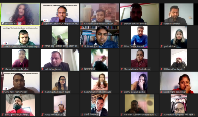 कञ्चनपुर : मिडिया एक्सन नेपालले लेखन र प्रकासन गरेको लैङ्गिक संबेदनसिल पत्रकारिता सम्वन्धी हाते पुस्तक बिमोचनको भर्चुअल कार्यक्रममा बोल्दै उक्त सस्थाका अध्यक्ष लक्ष्मण दत्त पन्तले पत्रकारिताको नाममा मनोरञ्जन पत्रकरिता फस्टाउदै गएकोमा चिन्ता ब्यक्त गर्नु भएको छ। कार्यक्रममा बोल्दै पन्तले मिडिया संबेदनसिल विषयमा समेत बिषयबस्तुलाई मनोरञ्जन तरिकाले पस्कने भएकोले गलत सुचना प्रवाह हुने गरेको र कतिपय मिडियाले लैङ्गिक बिषयको उठानलाई नजर अन्दाज गर्ने गरेको बताएका छन।