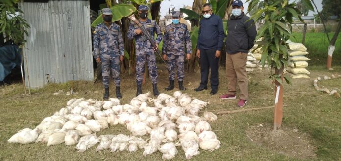 दोधारा । दोधारा चाँदनी नगरपालिका क्षेत्रमा सशस्त्र प्रहरीले भारतबाट लुकीछिपी ल्याएका अबैध समान माथी थप कडाई गरेको छ् । सशस्त्र प्रहरीले सिमा क्षेत्रमा हुदै आएको तस्करीलाई पुर्णरुपमा रोक लगाउन प्रयासरत छ् । सशस्त्र प्रहरीको भन्सार छलेर ल्याएका र ओमिक्रोन संक्रमण रोकथाम तथा नियन्त्रणको निम्ती नगर क्षेत्रको नेपाल–भारत सिमा क्षेत्र थप कसिलो बनाउन थालेको छ् । सशस्त्र प्रहरीले हिजो बिहान मात्रै दोधारा चाँदनी नगरपालिका वडा नं. ३, पुर्णागिरीघाट क्षेत्रको नेपाल–भारत सिमा क्षेत्रमा भारतबाट अबैधरुपमा ल्याउदै गरेको झण्डै २ सय कुन्टल बोईलर कुखुरा र ५ सय कुखुराका चल्ला बरामद गरेको छ् । सशस्त्र प्रहरी सिमा सुरक्षा बल बोडर आउट पोष्ट दोधारा चाँदनीका प्रहरी निरिक्षक कृष्ण बहादुर बोहराको कमाण्डमा गएको गस्ती टोलीले दोधारा चाँदनी नगरपालिका वडा नं. ३, पुर्णागिरीघाट क्षेत्रमा आज बिहान झण्डै २ सय कुन्टल बोईलर कुखुरा र ५ सय कुखुराका चल्ला बरामद गरेको सशस्त्र प्रहरीले जनाएको छ् । गस्ती टोलीलाई देखेपछि तस्करहरुको टोली कुखुरा छाडेर भागेको बताईएको छ् । बरामद अबैध कुखुरा र चल्लालाई स्थानियबासी, दोधारा चाँदनी नगरपालिका कार्यालयका पशु शाखाका प्रमुख कृष्ण सिंह साँउदको रोहवरमा बरामद कुखुरा तथा कुखुराका चल्लालाई नष्ट गरिएको सशस्त्र प्रहरी सिमा सुरक्षा बल बोडर आउट पोष्ट दोधारा चाँदनीले जनाएको छ् । सिमावर्ती भारतिय बजार देखी विभिन्न व्यवसायी समान तस्करी गरेर नेपाल ल्याईरहेको अवस्था नगरपालिका स्थित रहेको सशस्त्र प्रहरीले बरामद गर्न थालेपछि तस्करको योजना तुहिदै आएको छ् ।