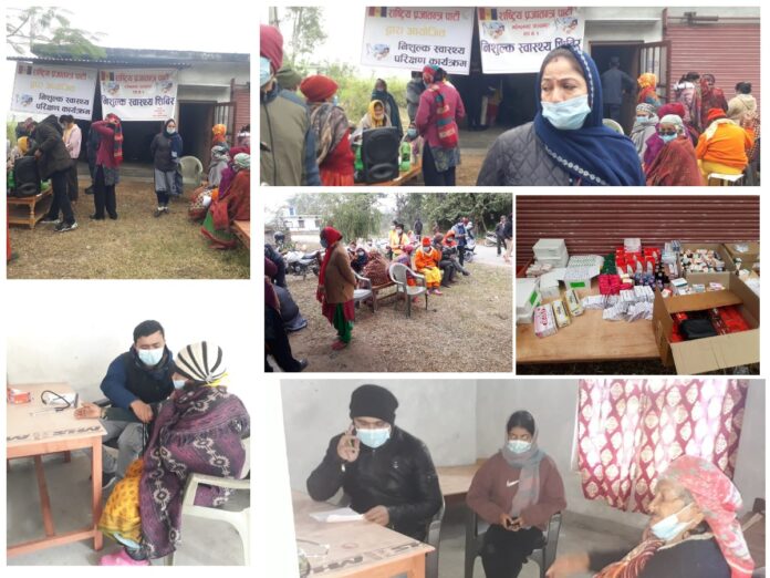 कञ्चनपुर : राष्ट्रिय प्रजातन्त्र पार्टी निकट महिला संगठन कञ्चनपुरले भीमदत्त नगरपालिकामा निःशुल्क स्वास्थ्य शिबिर संचालन गरेको छ । शुक्रबार भीमदत्त नगरपालिका १ बाराकुण्डामा राप्रपा निकट महिला संगठन कञ्चनपुरले भीमदत्त नगरपालिका बाराकुण्डामा निःशुल्क स्वास्थ्य शिबिर संचालन गरेको हो । राप्रपा महिला संगठन कञ्चनपुरकी अध्यक्ष हेलन श्रेष्ठले तेस्रो लहरको कोरोना महामारीका साथै सितलहर बढ्दै गएपछि विपन्न समुदायमा स्वाथ्य समस्या देखिन थालेपछि स्वास्थ्य शिबिर संचालन गरिएको बताईन ।