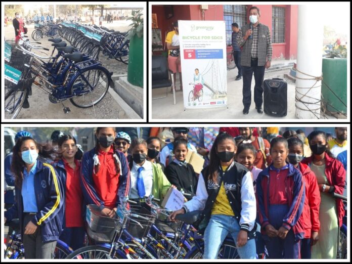 महेन्द्रनगर : अन्तराष्ट्रिय महिला दिवसको पूर्वसन्ध्यामा कञ्चनपुुरमा ४० छात्राहरुलाई साईकल वितरण गरिएको छ । शनिबार भीमदत्त नगरपालकाका ८ वटा सामुदायिक विद्यालयका विपन्न, दलित र जेहेन्दार छात्रालाई साइकल हस्तान्तरण गरिएको हो । छात्राहरुलाई विद्यालय जानको लागि सहज होस तथा ‘दिगो विकासका लागि जलवायु परिवर्तन नियन्त्रण र वातावरणमैत्री शहर बनाउनको लागि साईकल वितरण गरिएको सहयोगी संस्था यूएनडिपीका सुदूरपश्चिम प्रदेश प्रमुख वैजन्ती गिरी सिंहले जानकारी दिईन् । साथै छात्राहरुलाई समयमै विद्यालयमा पुगेर आफनो अधययन गर्न सकुन भनेर र बिधालय टाढा भएर विद्यालय छोडन नपर्ने, तथा बाल बिबाह रोक्ने र उच्च शिक्षामा सहज पहुँच पुय्राउने उदेश्यका साथ साईकल वितरण गरिएको उनले बताईन् ।