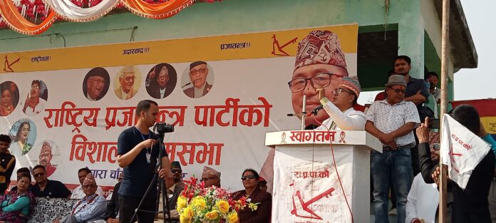 पप्पु गुरुङ्ग, दोधारा । राष्ट्रिय प्रजातन्त्र पार्टीका अध्यक्ष राजेन्द्र लिङ्देनले अहिलेका राजनीतिक दलहरुले देश लोकतन्त्र, गणतन्त्रको नाममा लुटतन्त्र भएको बताएका छन् । आज दोधारा चाँदनीमा राष्ट्रिय प्रजातन्त्र पार्टीको बिशाल आमसभा तथा पार्टी कार्यकर्ताहरुलाई सम्बोधन गर्दै अध्यक्ष राजेन्द्र लिङ्देनले सो कुरा बताएका हुन् । उनले अहिलेका राजनीकि दलका नेताहरुले राजनीतिलाई पैसा कमाउने पेशा बनाएको प्रति आक्रोश व्यक्त गरे । अब ति काँग्रेस कम्न्युनिष्ठ बिरुद्ध भण्डाभोर अभियान गर्नुपर्ने बताएका छन् । यस लागी जनताले भोट दिदा गम्भिर हुन जरुरी भएको बताएका छन् । अध्यक्ष लिङ्गदेनले राप्रपा पार्टीमा जसरी नेतृत्व परिवर्तन गर्‍यो त्यसरी जनमतको कदर गर्दै अब देश शत्ता परिवर्तन गर्ने समेत बताएका छन् । देश बिग्रीए संगै लाखौ युवाहरुको भविष्य पनि अन्धाकार तर्फ धकेलिदैछ त्यसैले सबै एकजुट भएर परिर्वतनको पक्षमा लाग्न समेत लिङदेनले आग्रह गरेका छन् । अध्यक्ष राजेन्द्र लिङदेलले कांग्रेंस र कम्युनिष्टको विकल्प खोज्न जनतालाई आग्रह गरेका छन् । ‘अब हुने स्थानिय तह, प्रदेश र प्रतिनिधी सभाको निर्वाचनमा जनताले राजनीतिक दल संग बद्ला लिने मौका आउछ’, उनले भने ।, ‘निर्वाचनमा कांग्रेंस, कम्युनिष्टको विकल्प खोजौं ।