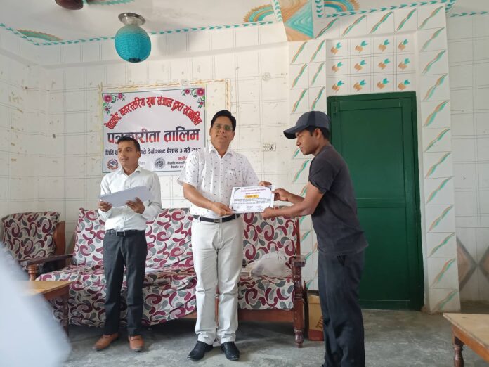 ललित साउँद /कञ्चनपुर : जिल्लाको बेदकोट नगरपालिकामा आधारभूत पत्रकारिता तालिम सम्पन्न भएको छ । वेदकोट नगरपालिकाको आर्थिक सहयोगमा वेदकोट युवा संजालको आयोजनामा एक साता सम्म संचालन गरिएको आधारभुत पत्रकारिता तालिम सनिवार एक कार्यक्रमका साथ नगर प्रमुख अशोक कुमार चन्दको प्रमुख आतिथ्यता मा समापन गरिएको हो।