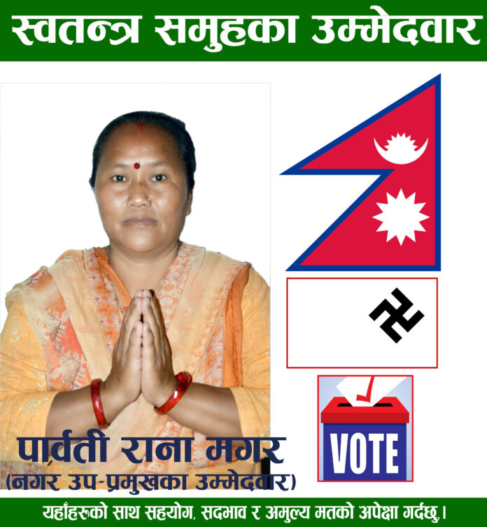 दोधारा । स्वतन्त्र समुहबाट दोधारा चाँदनी नगरपालिकामा पार्वती राना मगरले उपप्रमुख पदमा उम्मेदवारी दिएका छन् । उनले सामाजसेवी भिम कुमालले नेतृत्व गरेका सवतन्त्र समुहबाट नगरको उपमेयर पदमा उम्मेदवारी दिएकी हुन् । लामो समय उनले महिला, बालबालिका तथा युवाको क्षेत्रमा काम गरेकी छन् । बिभिन्न संघ–संस्थामा आबद्ध भई बालविवाह, छाउपडी प्रथा, लैंगिक हिंसा, महिला अधिकार, किशोर किशोरीको पक्षमा वकालत गर्दै आइरहेकी थिइन् । ‘लामो समय सामाजिक क्षेत्रमा काम गरे । नजिकको सरकारको सहयोगीको रुपमा काम गरेकाले सरकार कसरी चलाउन सकिन्छ भन्ने अनुभव छ्’ उपप्रमुखका उम्मेदवार पार्वती राना मगरले भनिन्, ‘सिंगो नगरपालिका सामाजिक विकृती मुक्त बनाउनका लागि मेरो उम्मेदवारी हो ।’ उनले केन्द्रबाट आउने रकम दीर्घकालीन लाभ हुने कार्यमा लगाउदै स्थानीय स्रोत र साधनको भरपुर सदुपयोग गर्ने र नगरलाई हरेक हिसाबमा आत्मनिर्भर बनाउने सोच रहेको बताईन् । उनले भनिन्, ‘केन्द्र र प्रदेश सरकार सधैं आर्थिक हिसाबले सशक्त हुन्छ भन्ने पनि छैन् । आर्थिक संकट चुलिदो अवस्थामा छ् । स्थानिय स्रोतहरुको सदुपयोग गरेर नगरको आम्दानी बढाउने कार्य प्राथमिकतामा पर्नेछ ।’ उनले नगर आर्थिक रुपमा आत्मनिर्भर हुने बित्तिकै नगर भिक्रका व्यत्ति बलियो हुने, व्यक्ति बलियो हुनु भनेको गरिबीको अन्त्य हुनु हो । उनले थपिन्, ‘गरिबीको अन्त्य हुने बित्तिकै हरेक विकृति विसंगति आफैं निर्मूल हुनेछ् । युवा, महिलालाई रोजगार पक्का हुन्छ् । बाल अधिकारका क्षेत्रमा काम गर्न सहज हुनेछ ।’ उम्मेदवार पार्वती राना मगरले भने । स्थानिय सरकार भ्रष्टाचारमा मुछिएको अवस्थामा रोकथाम गर्नु आफ्नो पहिलो योजना रहेको उनको भनाई रहेको छ् ।