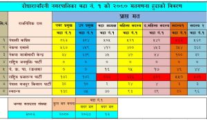 दोधारा । दोधारा नगरपालिका–५ मा राप्रपाका वडा अध्यक्षका उम्मेदवार केशव खत्री सहित पुरै प्यानल बिजयी बनेका छ्न । बिजयी चन्दले ४९८ मत ल्याउदै बिजयी भएका हुन । उनले आफ्ना निकटतम प्रतिद्वन्दी नेपाली कांग्रेसले ३८० मत प्राप्त गरेका थिए भने नेकपा एमाले उम्मेदवार २७२ मत ल्याएका थिए । त्यसैगरी १ मा राप्रपाका वडा अध्यक्षका उम्मेदवार बिक्रम चन्द बिजयी बनेका छ्न । बिजयी चन्दले ८०६ मत ल्याएर बिजयी भएका हुन । उनले आफ्ना निकटतम प्रतिद्वन्दी नेपाली कांग्रेस ५०५ मत प्राप्त गरेका थिए भने नेकपा एमाले उम्मेदवार ४१२ मत ल्याएका थिए । कञ्चनपुरका नौं स्थानीय तह मध्ये आठ वटा स्थानीय तहमा मतगणना जारी रहेको छ । पुनर्वास नगरपालिकाको वडा नम्बर –१० मा फर्जी मत परे पछि बिबादास्पद बनेको मतदान केन्द्र निर्वाचन प्रक्रिया नै रोकिएको छ । उक्त नगरपालिकामा मतगणना कार्यक्रम समेत रोकिएको छ् । दोधारा चाँदनी नगरपालिकामा नेपाली कांग्रेसले अग्रता कायम राखेको छ् । काग्रेंसका उम्मेदवार गोपाल भट्ट र एमाले उम्मेदवार किशोर लिम्बू र स्वतन्त्र उम्मेदवार भिम कुमाल बिच प्रतिस्पर्धा हुदैछ् ।