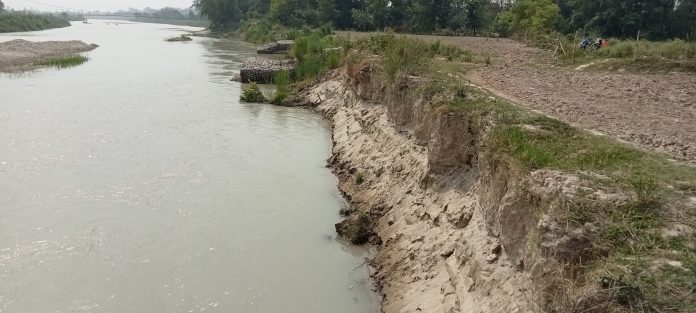 दोधारा । सरकारको चरम लापरवाहीको कारण अठार नम्वर पिल्लर बस्ती बिस्तापितको संघारमा रहेको छ् । माहाकाली नगरपालिका वडा नं. १० को जगबुडा नदीको पारीको नेपाल–भारत सिमा स्तम्भ संग जोडिएको सीमा क्षेत्रमा अवस्थीतको अठार नम्वर पिललर बस्ती नदी कटानी देखि भारतियहरुको हेपाहा समस्या खेप्दै आएका छन् । जगबुडा नदीले उनिहरुको जग्गा कटान गरेर घर छेउ नदी पुग्न थालेपछि उनिहरु बिस्तापितको संघारमा रहेका छन् । वर्षामा बाढीको कारण उनिहरुलाई ज्यान जोगाउन गाहृो हुन्छ भने हिउदमा जग्गा कटानी गरेर हैरानी खेप्नु परेको बताएका छन् । अठार नम्वर पिल्लर बस्तीका एक स्थानिय डम्मरी ओलीको दुई बिघाह जग्गा नदीले उनको खेती योग्य जग्गा बगाईदिएपछि उनलाई खानाको समस्या ठुलो समस्या परेको छ् । उनि भन्छन् – ‘दुई बिघाह खेती योग्य जग्गा कटानी गरेर ३ कठ्ठा जग्गा बचेको छ्’ । यस पटकको हिउदे कटानीले उनि मात्रै हैन अठार नम्वर पिल्लर बस्तीका सबै किसान हैरान भएका छन् । अठार नम्वर पिल्लर बस्तीमा ९ घरधुरी रहेका छन् । उक्त बस्तीमा झण्डै २ सय बिघाह जग्गा रहेको स्थानिय डम्मरी ओलीले बताए । अन्य जग्गाधनीको घर जगबुडा नदीको वारी रहेको छ् ।