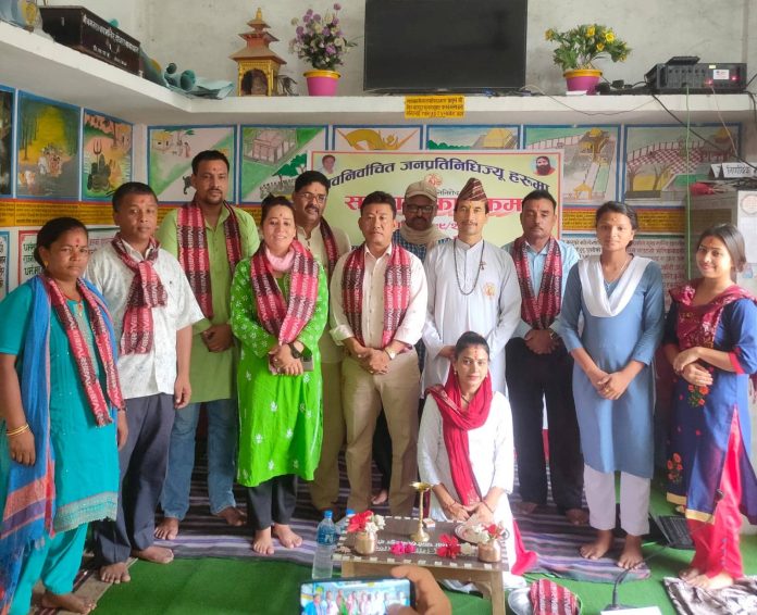दोधारा । दोधारा चाँदनी नगरपालिका स्थित रहेको पतञ्जली योग समितिले स्थानिय तहका नवनिर्वाचित जनप्रतिनिधीहरुलाई सम्मान गरेको छ् । दोधारा चाँदनी नगरपालिका वडा नं. ७ स्थित रहेको पतञ्जली योग समितिले दोधारा चाँदनी नगरपालिकाका स्थानिय तहमा निर्वाचित जनप्रतिनिधीलाई सम्मान गरेको पतञ्जली योग समितिका महामन्त्री हरिओंम रसाईलीले जानकारी दिएका छन् । हालै दोधारा चाँदनी नगरपालिकाको स्थानिय तहमा निर्वाचित भएका जनप्रतिनिधीहरुलाई कार्यकालको सफलताका साथै निर्वाचित भएकोमा सम्मान गरिएको पतञ्जली योग समिति दोधारा चाँदनी महामन्त्री हरिओंम रसाईलीले बताएका छन् । सम्मान कार्यक्रममा दोधारा चाँदनी नगरपालिकाका नगरप्रमुख किशोर कुमार लिम्बु, नगर उपप्रमुख गंगा जोशी, दोधारा चाँदनी नगरपालिका वडा नं. ६ का वडाध्यक्ष तथा नगर प्रबक्ता ओंम बस्नेत, वडा नं. ७ का वडाध्यक्ष ज्ञानेन्द्र बहेक क्षेत्री, वडा सदस्य कमला देबी उपाध्याय्, आईत बहादुर क्षेत्री, दिलसरा सुनार, वडा नं. ९ का वडाध्यक्ष गोपीलाल कडेंल, पतञ्जली योग समिति दोधारा चाँदनीका योग साधक बन्दना पौडेल, अनुश्री नेपाली, योग शिक्षक ईन्दु सिंह, उत्सव सिंह, देब बहादुर थापा लगाएतको उपस्थिती रहेको थियो । दोधारा चाँदनी नगरपालिकाको बिभिन्न स्थानमा योग मार्फत नागरिकहरुहरुलाई सचेत बनाउने अभियान निरन्तर चलिरहेको पतञ्जली योग समितिका महामन्त्री हरि ओंम रसाईलीले जानकारी दिएका छन् । योग मार्फत नागरिकहरुलाई सकारात्मक सोच तथा योग मार्फत स्वस्थ बनाउन पतञ्जली योग समिति सक्रिय रहदै आएको कार्यक्रममा उनले बताए । दोधारा चाँदनी नगरपालिकाका नगर प्रमुख किशोर कुमार लिम्बुले पतञ्जली योग समिति व्यक्तिको स्वास्थ्य मात्रै नभई समानता प्रदान गरेको बताएका छन् । समाजमा सकारात्मक अभियान प्रवाह गर्न योग प्रमुख माध्यम रहदै आएको हुदा दोधारा चाँदनी नगरपालिका कार्यालयले पतञ्जली योग समितिलाई आवश्यक सहयोग गर्ने समेत प्रतिबद्धता जाहेर गरेको बताईएक