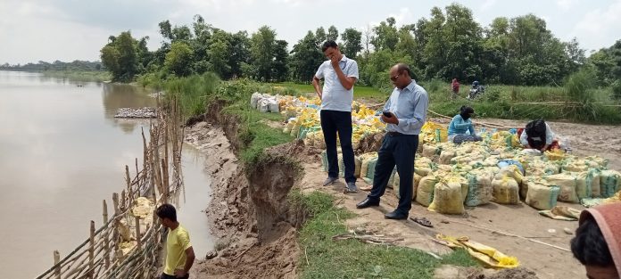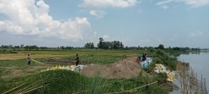 दोधारा । अठार नम्वर पिल्लर बस्ती जोगाउन संचालनमा रहेको जैबिक तटबन्ध निमार्ण कार्यको स्थलगत अनुगमन गरिएको छ् । डिसीए नेपालको आर्थिक सहयोग र नेपाल राष्ट्रिय समाज कल्याण संघ (एनएनएसडब्लुए) को सुद्धढ परियोजना अन्तर्गत जगबुडा नदीमा संचालनमा रहेको जैविक तटबन्ध निमार्ण कार्यको आज राष्ट्रिय समाज कल्याण संघ (एनएनएसडब्लुए) कञ्चनपुरका कार्यकारी निर्देशक अशोक बिक्रम जैरुले स्थलगत अनुगमन गरेका छन् । निर्देशक जैरुले स्थानियबासी र उपभोक्ता समितिका पदाधिकारी संग भेट गरि कामको प्रगती र अवस्थामा जानकारी लिएका थिए । केही दिन अघि मात्रै जगबुडा नदीमा पानीको बहाव तिब्र भए संग रोकिएको जैबिक तटबन्धको निमार्ण कार्य पुन : सुरु भएको हो । दोधारा चाँदनी नगरपालिकाको दक्षिण–पश्चिम तर्फ भएर बग्ने जगबुडा नदीले तटिय क्षेत्रका बस्तीमा धनजनको क्षति गर्नुका साथै खेती योग्य जमिन कटान गर्दै आएको कारण जग्गा र बस्ती जोगाउन दोधारा चाँदनी नगरपालिका कार्यालय संग सहकार्य गरि जैबिक तटबन्धको निमार्ण कार्य सुरु गरिएको राष्ट्रिय समाज कल्याण संघ (एनएनएसडब्लुए) का कार्यकारी निर्देशक अशोक बिक्रम जैरुले बताएका छन् । नदीको बहाव बढ्न सक्ने अवस्था रहेको हुदा तटबन्धको निमार्ण कार्य यथासिघ्र सक्ने तयारी रहेको बताईएको छ् । नदी कटानी बस्ती जोगाउन निमार्ण हुदै गरेको जैबिक तटबन्ध निमार्ण संग स्थानियहरु खुशी छाएको छ् ।