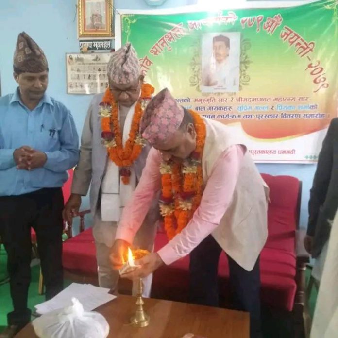 धनगढी : आषाढ २९ सुदूरपश्चिमाञ्चल साहित्य समाज र कैलाली जनपुस्तकालयको सयुँक्त आयोजनमा धनगढीमा २०९औं भानुजयन्ती मनाईयो। धनगढी चौराहदेखि शुरू भएको प्रभातफेरीमा र्यालीका सहभागीहरूले कैलाली जनपुस्तकालयको प्रांगणमा रहेको भानुको शालिकमा माल्यार्पण गरेका थिए।