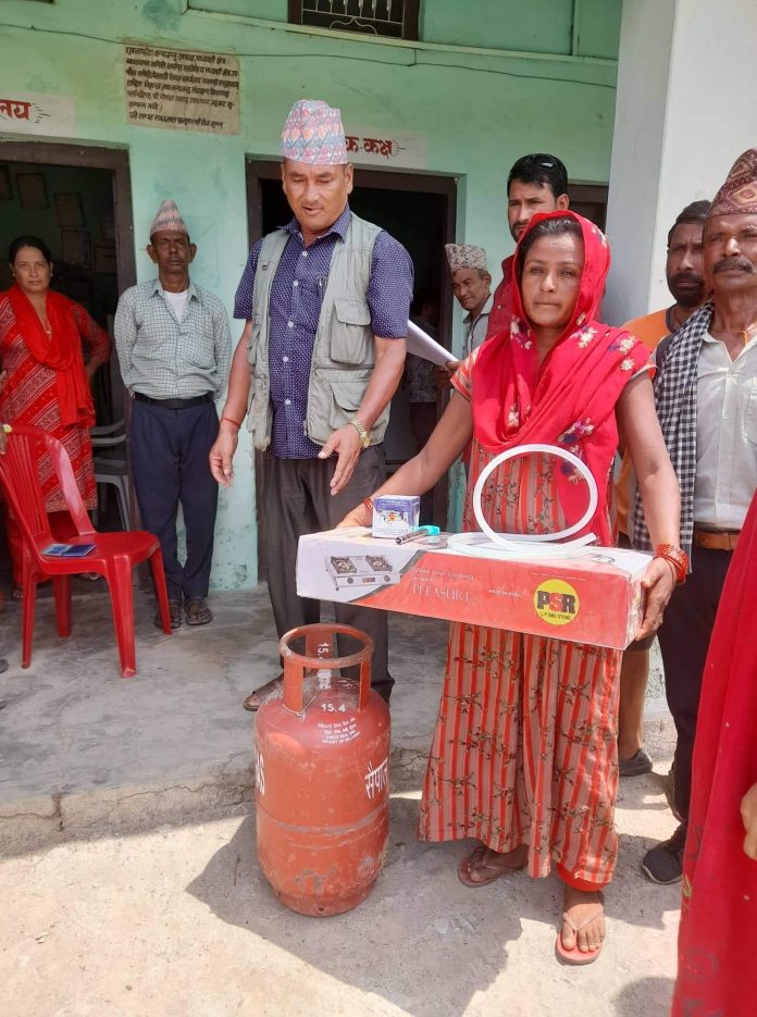 अध्यक्ष थापाले निकुञ्ज क्षेत्र किनार बेलडाँडीका २५ विपन्न परिवारलाई ग्याँस चुलो सेट वितरण गरिएको बताए । निःशुल्क ग्याँसे चुलो सेट पाएपछि स्थानीय विपन्न किसान हर्षित भएका छन ।