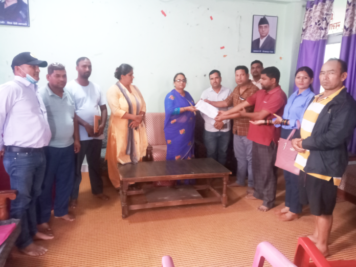 कञ्चनपुर: नेकपा माओवादी केन्द्रले सार्कीपार्की टोलका विपद् पीडित नागरिकलाई राहत, क्षतिपूर्ति र उक्त स्थानमा तटबन्ध निर्माण गर्न माग अघि सारेको छ । आईतबार नेकपा माओवादी केन्द्र बेदकोट नगर कमिटीले नगरपालिकामा ज्ञापन पत्र बुझाउँदै चौधर नदीबाट विस्थापित सार्कीपार्की टोलका स्थानीयलाई राहत, क्षतिपूर्ति दिलाउन र उक्त स्थानमा तटबन्ध निर्माण गर्न माग अघि सारेको हो । नेकपा माओवादी केन्द्र बेदकोट नगर सचिव दान बहादुर बमले चौधर नदीको कटानीका कारण विपद्को उच्च जोखिममा परेका सार्कीपार्की टोलका स्थानीयलाई राहतका साथै उनीहरुको खेतबारी बगाएकाले न्यायिक क्षतिपूर्ति दिनुपर्ने माग अघि सारेर बेदकोट नगरपालिकामा ज्ञापन पत्र बुझाएको बताए ।