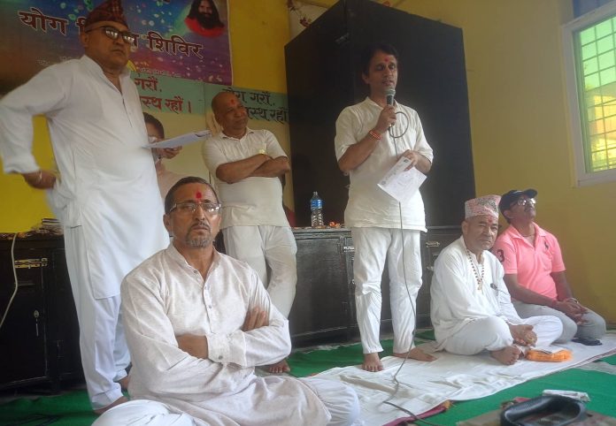 कञ्चनपुर : नेपाल पंतञ्जली योग समिति अन्र्तगतको पंतञ्जली योग समिति कञ्चनपुर तथा पंतञ्जली महिला योग समितिका पदाधिकारीहरुको एक समारोहका बीच सपथ ग्रहण कार्यक्रमको समरोह सम्पन्न भएको छ । पंतञ्जली योग समिति कञ्चनपुरका अध्यक्ष दयाकृष्ण जोशी अध्यक्षता एवं नेपाल पंतञ्जली योग समितिका केन्द्रिय सदस्य कञ्चनपुर जिल्लाका संस्थापक एवं मुख्य योग प्रशिक्षक लब राज भट्टको प्रमुख आतिथ्यतामा बरिष्ठ अधिवक्ता हिक्मत सिंह भण्डारीले नव निर्वाचित पदाधिकारीहरु लाई सपथ गराउनु भएको थियो ।