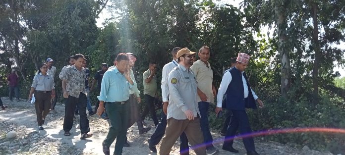 अनुगमनमा कञ्चनपुरका प्रमुख जिल्ला अधिकारी गोपाल प्रसाद अर्यालय, जिल्ला समन्वय समिति कञ्चनपुरका संयोजक दुर्गा बोहरा, दोधारा चाँदनी नगरपालिकाका मेयर किशोर कुमार लिम्बु, उपमेयर गंगा देबी जोशी, पत्रकार महासंघ कञ्चनपुरका अध्यक्ष माधव जोशी, शुक्लाफाँटा राष्ट्रिय निकुञ्ज मझगाँउका वार्डेन किशोर कुमार मेहता, सुरक्षा अधिकारीको सहभागिता रहेको थियो । टोलीले दोधारा चाँदनी नगरपालिका वडा नं. १० को प्रधान टोल, कुतियावकर बस्ती नजिक रहेको महाकाली नदीको अवस्था र तटबन्धको अवस्थाको बारेमा स्थानियहरु संग जानकारी लिएको थियो । दोधारा चाँदनी नगरपालिकाका मेयर किशोर कुमार लिम्बुले महाकाली नदीको पक्की तटबन्धको क्षतीग्रस्त अवस्था र तटबन्धको सतह बिगतका तुलनामा धस्सीदै गएको प्रमुख जिल्ला अधिकारीलाई जानकारी गराएका थिए ।