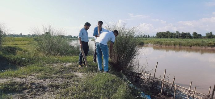 पप्पु गुरुङ्ग, दोधारा । अठार नम्वर पिल्लर बस्तीलाई जोगाउन निमार्ण गरिएको जैबिक तटबन्धको अनुगमन गरिएको छ् । दोधारा चाँदनी नगरपालिका वडा नं. १० अठार नम्वर पिल्लर बस्ती जोगाउन निमार्ण गरिएको जैविक तटबन्धको निमार्ण कार्य सम्पन्न पछि अनुगमन गरिएको हो । डिसीए नेपालको सहयोग र नेपाल राष्ट्रिय सामाज कल्याण संघ (एनएनएसडब्लुए) को सुद्दढ परियोजना बाट निमार्ण गरिएको एक सय पचास मिटर लामो जैविक तटबन्ध निमार्ण कार्य सम्पन्न भएको हो । नेपाल राष्ट्रिय सामाज कल्याण संघ (एनएनएसडब्लुए) सुद्दढ परियोजनाका कार्यक्रम संयोजक राजकुमार सुनार, बाताबरण बिज्ञ गणेश ठगुन्ना र डिसी नेपालका बाताबरण बिज्ञ राजन थापा लगाएतले अनुगमन गरेका छन् । सम्झौता अनुसार स्थानिय उपभोक्ताहरुले समयमै निमार्ण कार्य सम्पन्न गरेको बताईएको छ् । जगबुडा नदीको कटानीको कारणले अठार नम्वर पिल्लर बस्ती उच्च जोखिममा रहदै आएको छ् । बस्तीलाई जोगाउन डिसीए नेपालको सहयोग र नेपाल राष्ट्रिय सामाज कल्याण संघ (एनएनएसडब्लुए) सुद्दढ परियोजनाबाट जैविक तटबन्ध निमार्ण कार्य अघि बढाएको हो । नेपाल राष्ट्रिय सामाज कल्याण संघ (एनएनएसडब्लुए) का सुद्दढ परियोजनाका कार्यक्रम संयोजक राजकुमार सुनार अनुसार सम्झौता अनुसार उपभोक्ताहरुले जैविक तटबन्ध निमार्ण कार्य समयमै सन्तोषजनकरुपमा सम्पन्न गरेको बताएका छन् । अठार नम्वर पिल्लर बस्तीमा जम्मा आठ घरपरिवारहरु बसोबास गर्दै आएका छन् । भारतको सिमा संग जोडिएर रहेको उक्त बस्तीलाई जोड्ने गत वर्ष मात्रै झोलुङ्गे पुल निमार्ण भएको हो ।