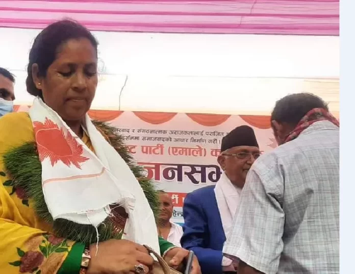 माओवादीले भुई मान्छे, थारु आदिवासी, दलित जनजाती एव महिला, पिछडीएको क्षेत्रका लागि केही गर्नुपर्छ भन्दै ०७० सालमा ग्रामिण भेगकी महिला दुर्गा खुनालाई समानुपातिक संसद बनायो, उतिबेला जता गयो त्यही माओवादीको गुणगान गाउने दुर्गा अहिले एमाले अध्यक्ष ओलीबाट दुबोको माला लगाएर एमालेमा प्रवेस गरेकी छिन । हुनत दुर्गा यस अघि ०७४ सालतिर काँग्रेसमा पनि प्रवेस गरेकी थिईन ।