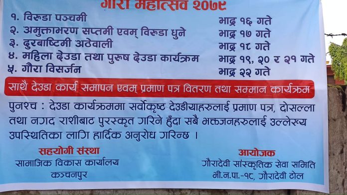 सुदूरपश्चिममा गौरा पर्व शुरु महेन्द्रनगरमा गौरा महोत्सव, देउडा प्रतियोगिता हुने