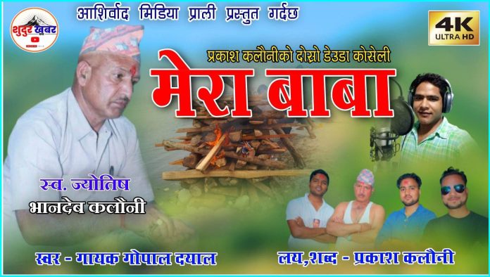 कंचनपुर – प्रकाश कलौनीको “मेरा बाबा” नामक देउडा गीत सार्बजनिक भएको छ। चर्चित गायक गोपाल दयालको स्वर रहेको उक्त गीतको निर्माण काठमाडौंमा रहेकोे म्युजिक प्लस रेकर्डिङ स्टुडियोले गरेको हो । आफ्नै लय तथा शब्द रहेको उक्त गीतमा कलौनीले आफ्नो बुवा गुमाउनुको पीडालाई गीत मार्फत व्यक्त गर्न खोजेका छन । बैतडीको तल्लो स्वराड साबिकको शर्माली गा.बि.स वडा नम्बर १ डिस्लानीमा २०२३ सालमा जन्मिएका उनका बुवा भानदेव कलौनी बुवा हरि दत्त कलौनी र आमा सीता पार्वती कलौनीका माइला छोरा हुन । पाँच दाजुभाइ र एक दिदी संगै हुर्केका उनी सानै उमेरमा परिवारको आर्थिक स्थिती कमजोर भएका कारण निम्नमाध्यमिक सम्मको शिक्षा गाउँमै रहेको श्री नागार्जुन माध्यमिक विद्यालय बाट पूरा गरेका हुन ।