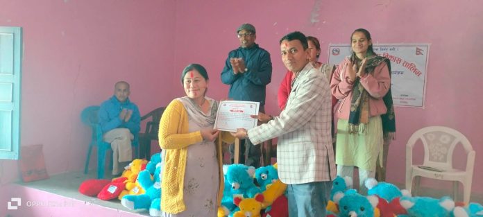 दोधारा । दोधारा चाँदनीमा एक हप्ते गुडिया बनाउने तालिम सम्पन्न भएको छ । दोधारा चाँदनी नगरपालिका कार्यालयको सहयोगमा दोधारा चाँदनी– २ वडा कार्यालयको आयोजनामा महिलाहरुलाई एक हप्ते गुडिय बनाउने तालिम सम्पन्न भएको दोधारा चाँदनी– २ का वडाध्यक्ष पदमर रावलले जानकारी दिएका छन् । एक हप्ते गुडिया बनाउने तालिमको समापन सत्रमा दोधारा चाँदनी– २ का वडाध्यक्ष .पदम रावल, वडा सदस्य मनकला खनाल पुजारा, कमान सिंह धामी, महाबिर सिंह धामी, वडा कार्यालय सचिव नरेन्द्र साँउद, तालिमका प्रशिक्षक छाया देबि चन्द, दोधारा चाँदनी नगरपालिका कार्यालय लद्यु उद्यम शाखाका जयन्ती भट्ट लगाएत तालिमका सहभागीहरुको सहभागी रहेको थियो ।
