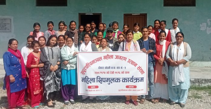 पप्पु गुरुङ्ग, दोधारा । दोधारा चाँदनी नगरपालिकामा महिलाहरुलाई आत्मनिर्भर बनाउन एक हप्ते महिलाको श्रंगार अर्थात डोरी बनाउने तालिम संचालन गरिएको छ् । दोधारा चाँदनी नगरपालिका वडा नं. ५ वडा कार्यालयको सहयोग र शुदुरपश्चिम महिला जागरण उत्थान संस्था दोधारा चाँदनीको आयोजनामा एक हप्ते महिलाको श्रंगार अर्थात डोरी बनाउने तालिम संचालन गरिएको शुदुरपश्चिम महिला जागरण उत्थान संस्था दोधारा चाँदनीका अध्यक्ष नन्दा खत्रीले जानकारी दिएका छन् । वडामा रहेका महिलाहरुलाई लक्षित गरेर आजबाट तालिम संचालन गरिएको हो ।