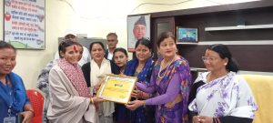 दोधारा । दोधारा चाँदनी नगरपालिका कार्यालयले माईती नेपाल कञ्चनपुरका संयोजक महेश्वरी भट्टलाई सम्मान गरेको छ् । दोधारा चाँदनी नगरपालिका लगाएत कञ्चनपुरको क्षेत्रमा मानव बेचबिखन तथा ओसार पसार नियन्त्रण कार्यमा उल्लेखनिय कार्य गरेको बताउदै एक कार्यक्रमको बिच माईती नेपाल कञ्चनपुरका संयोजक महेश्वरी भट्टलाई दोधारा चाँदनी नगरपालिका कार्यालयले सम्मान गरेको हो । माईती नेपाल कञ्चनपुरका संयोजक महेश्वरी भट्टलाई सम्मान गर्दै दोधारा चाँदनी नगरपालिकाका नगर उपप्रमुख गंगा देबी जोशीले मानव बेचबिखन तथा ओसार पसार नियन्त्रणका दोधारा चाँदनी नगरपालिका लगाएत कञ्चनपुर क्षेत्रमै राम्रो काम गर्दै आएको बताउनु हुदै सम्मान गरिएको बताउनुभएको छ् ।