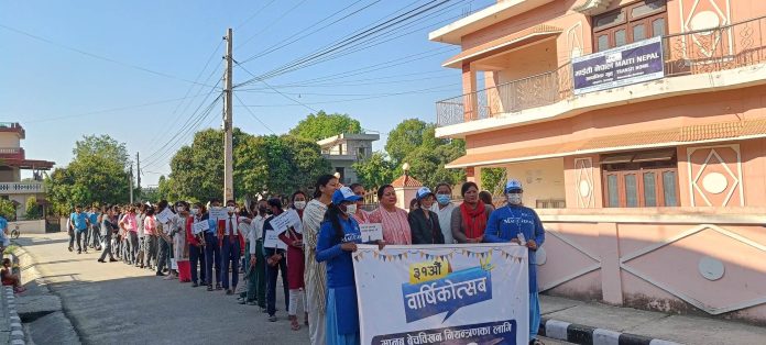 दोधारा । मानब बेचबिवखन बिरुद्ध कार्यरत संस्था माईती नेपालले बृहत शान्ति र्यालीको आयोजना गरेको छ । मानव बेचविखन तथा ओसार पसार नियन्त्रणका लागि जनचेतना अभिबृद्धि गर्न र्यालीका आयोजना गरिएको हो । संस्थाको ३१ औं बार्षिकोत्सवका अवशरमा माइति नेपाल कञ्चनपुरले जिल्ला सदरमुकाम महेन्ऽनगर देखि शुरु गरेको र्याली पश्चिमी सिमा नाका गड्डाचौकी पुगेर कोण सभामा परिणत भएको जनाईएको छ । सदियौं देखि नेपाली समाजमा जरो गाडेर रहेको मानव बेचविखन तथा ओसारपसार जस्तो जघन्य अपराध नियन्त्रणका लागि संघर्ष गर्ने संस्थाहरु मध्ये माईती नेपाल सबै भन्दा पुरानो गैर सरकारी संस्था हो । यस संस्थाले कञ्चनपुर जिल्लामा शाखा बिस्तार गरेयता मात्रै बेचविखनको जोखिममा रहेका तीन हजार तीन सय १८ जना महिला तथा बालबालिकाको गड्डाचौकी सिमानाका बाट उद्धार गरेको छ् । सिमा नाका गड्डाचौकीमा आयोजित कोण सभालाई सम्बोधन गर्दै माईती नेपाल कञ्चनपुरकी संयोजक महेश्वरी भट्टले भनिन् – ‘माइती नेपाल कञ्चनपुरले मात्रै भारतका बिभिन्न कोठीहरुमा बेचीईसकेका दुई सय १८ जना महिला तथा बालबालिकाको उद्धार तथा पुनर्स्थापना गरिसकेको छ ।
