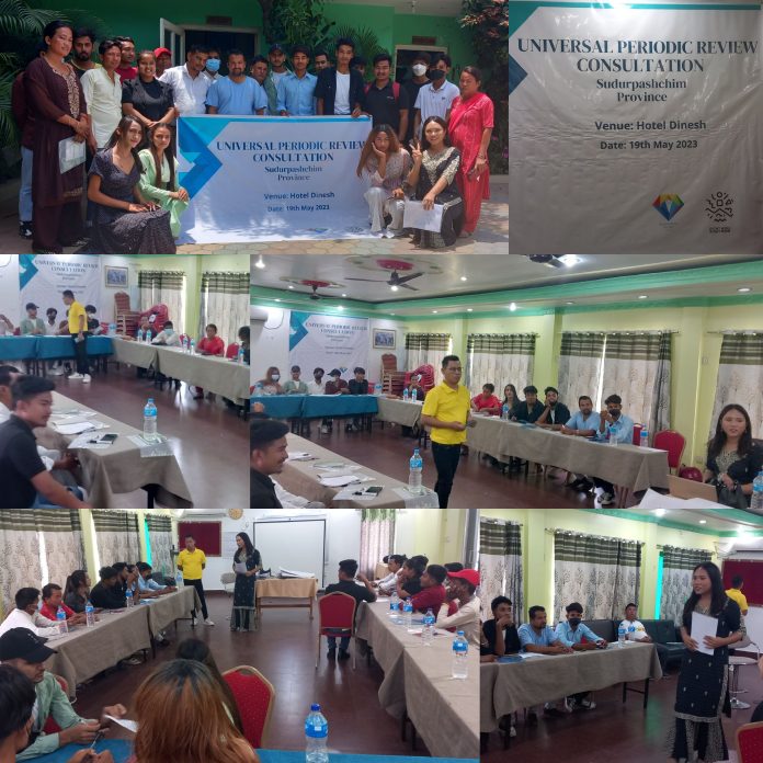धनगढी: सुदूरपश्चिम प्रदेशमा यौनिक तथा लैङ्गकि अल्पसंख्यक समुदायको मुद्धा लाई मध्यनजर गर्दै विश्वव्यापी आवधिक समीक्षा परामर्श कार्यक्रम सम्पन्न सम्पन्न भएको छ।शुक्रबार धनगढीमा राईट हेयर राईट नाउ द परियोजना अन्तर्गत निल हिरा समाज काठमाडौले सुदूरपश्चिम समाजको समन्वयमा विश्वव्यापी आवधिक समीक्षा परामर्श (यू.पि.आर) कार्यक्रमको आयोजना गरिएको हो।स्थानिय सरकार र प्रदेश सरकारले नीति निर्माण तथा बजेट तर्जुमा गरि यौनिक तथा लैङ्गकि अल्पसंख्यक समुदायका मुद्दा लाई सम्बोधन संगै संविधानमा उल्लेखित कानुन कार्यन्वयनको हुनु पर्ने माग रहेको छ।लाल्छेन तथा विभेद न्यूनीकरणका लागि योजनामा राख्नु पर्ने बताए। संविधानमा उल्लेख गरेका हक अधिकारी व्यवहारमा लागू भने गर्न सकेको छैन। यसलाई पनि तिनै तहका सरकारले कार्यान्वयन गर्न र पहुचका आधारमा नभई सबैको समान अधिकार ,सुदूरपश्चिम समाजका कार्यक्रम संयोजक राजु लामाले बताउनु भयो। उनले भने स्थानीय सरकारले नीति तथा कार्यक्रममा योजना समाबेस गर्दै आएको छ । यस्तै प्रदेश सरकारले कार्यक्रम योजना छुट्याउनु पर्छ ।