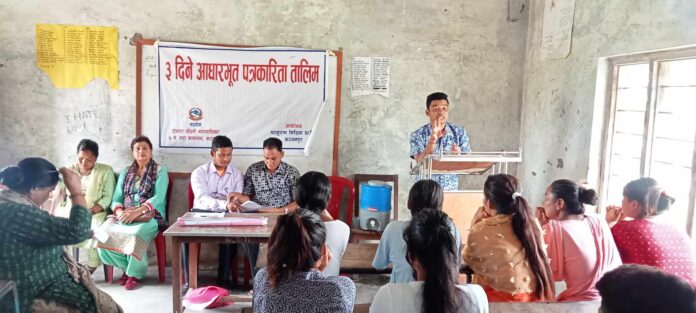 पत्रकारिता क्षेत्रको समग्र विकास गर्ने लक्ष्यका साथ सञ्चालित तिन दिने तालिममा वडाका २० जना किशोर, किशोरीहरुको सहभागिता रहेको थियो । दोधारा चाँदनी नगरपालिका– ७ वडा सदस्य संदिप उपाध्याले तालिमको उद्धघाटन गर्दै लोकतन्त्रको रक्षाका लागि सञ्चार जगत्को भूमिका महत्वपूर्ण बताएका छन् । मुलुकमा विभिन्न समयमा भएका परिवर्तनको आन्दोलनमा सञ्चार क्षेत्रले महत्वपूर्ण भूमिका निर्वाह गर्दै आएको बताउदै उनले अबको पत्रकारिता मिसनका लागि नभई लोकतन्त्रको रक्षाका लागि हुनुपर्ने जोड दिएका छन् ।
