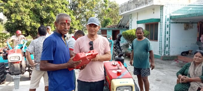 आज एक कार्यक्रमको बिच किसानहरुलाई अनुदानमा पावर ट्रिलर ट्याक्टर बितरण गरिएको वडाध्यक्ष खत्रीले जानकारी दिएका छन् । उनका अनुसार आफ्नो वडामा बसोबास गर्ने १३ जना किसान र वडा नं. ४ का दुई जना किसानलाई ५० प्रतिशत रकम अनुदानमा पावर ट्रिलर ट्याक्टर बितरण गरिएको हो । वडामा रहेका कृषकहरुलाई कृषी उपजमा सघाउने उद्धेश्यले हरित नेपाल र असिम कृषी औजार एण्ड सप्लायार्स संगको सहकार्यमा अनुदानमा पावर ट्रिलर ट्याक्टर बितरण गरिएको वडाध्यक्ष खत्रीले बताएका छन् ।