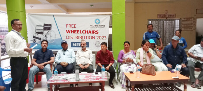 दोधारा । दोधारा चाँदनी नगरपालिकामा अपांगता भएका ब्यक्तीहरुलाई सहायक सामग्री बितरण गरिएको छ् । हेल्पीङ हेण्डको सहयोगमा दोधारा चाँदनी नगरपालिकामा रहेका १० जना अपांग भएका ब्यक्तीहरुलाई ह्विल चियर बितरण गरिएको दोधारा चाँदनी नगरपालिका कार्यालयका प्रमुख प्रशासकिय अधिकृत गणेश दत्त मिश्रले जानकारी दिएका छन् । दोधारा चाँदनी नगरपालिकाका मेयर किशोर कुमार लिम्बुको सभापतित्वमा संचालित अपांगता भएका ब्यक्तीहरुलाई ह्विल चियर बितरण कार्यक्रमका प्रमुख अतिथी हेल्पीङ हेण्ड नेपालका प्रमुख जिवा पोखरेल रहेका थिए भने, बिशिष्ठ अतिथीमा दोधारा चाँदनी नगरपालिकाका उपमेयर गंगा देबी जोशी रहेका थिए । यस्तै आतिथीमा वडाध्यक्ष, बाताबरण संरक्षण तथा समाज कल्याण संघ नेपाल कञ्चनपुरका पशुपती थापा मगर लगाएत दोधारा चाँदनी नगरपालिका कार्यालयका स्वास्थ्य शाखाका शाखा प्रमुख गणेश दत्त मिश्र लगाएत स्थानियहरुको उपस्थिती रहेको थियो ।