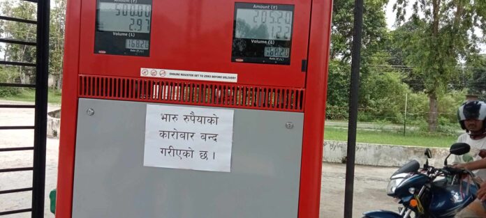 दोधारा । आर्थिक मन्दीले बजार सुस्ताएका बेला बजारमा एका एक भारतीय रुपैया आएपछि पेट्रोल पम्पले कारोबार गर्न छाडेका छन् । बैंकले भारतीय रुपैया जम्मा नगर्ने भन्दै पम्पहरुले भारुमा कारोबार छाडेका छन् । पम्पहरुले भारतीय रुपैया चल्दैन भनेर सूचना टाँस गरेका छन् । केही वर्ष अघि सम्म जग्गा बाहेक अन्य सबै कारोबार भारुमै हुने दोधारा चाँदनीमा समेत पम्पले भारु लिन छाडेका छन् । पम्पमा मात्रै नभई, सहकारी बैंक, लघुबित्तिय संस्था र बजाहरुमा भारतिय रुपिया कारोवार बन्द भएको छ् । भारतीय रुपैंयालाई बैंकहरुले जम्मा गर्न नमानेपछि काराबोर बन्द गरिएको पम्प सञ्चालकहरुले दावी गरेका छन् ।