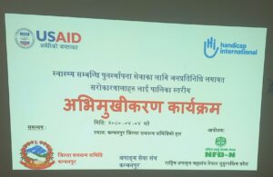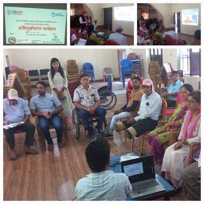 महेन्द्रनगर: कञ्चनपुरको महेन्द्रनगरमा स्वास्थ्य सम्बन्धी पुनरस्थापना सेवाका लागि जनप्रतिनिधि लगायत सरोकारवालाहरुलाई पालिका स्तरीय अभिमुखिकण तथा छलफल कार्यक्रम सम्पन्न भएको छ ।