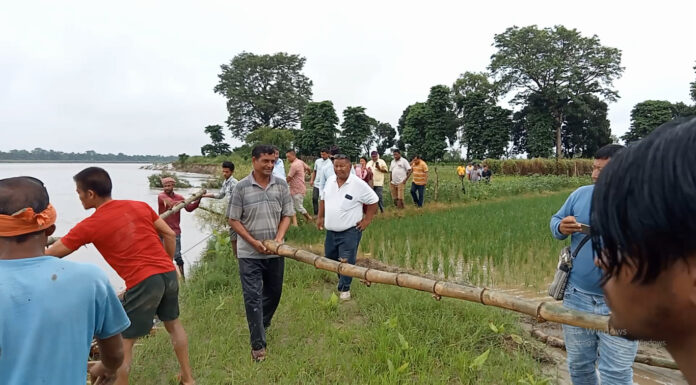 अस्थायी तटबन्ध निमार्णको लागी किस्तीबाट बाँस ढुवानी गरिएको छ् । भौगलिक बिकटताको कारण बस्तीमा सवारी साधन नपुग्ने भएको कारण किस्तीको सहायताबाट बाँस ढुवानी गरिएको वडाध्यक्ष चन्द्र बहादुर सिंहले बताएका छन् । निमार्ण सामग्री संकलन हुने बित्तिकै तटबन्ध निमार्ण कार्य अघि बढाईने वडाध्यक्ष सिंहको भनाई रहेको छ् । महाकाली नदीमा पानीको बहाव तिब्र भएर खड्के सुनार, कर बहादुर सुनार, धन बहादुर सुनार, नैन सिंह सुनार, ऐन बहादुर सुनार, भिम बहादुर खत्री, लिाल देबी खत्री, जितु खत्री, कले खत्री गरि झण्डै २ बिघाह खेती योग्य जग्गा कटानी गर्दै आएको छ् ।