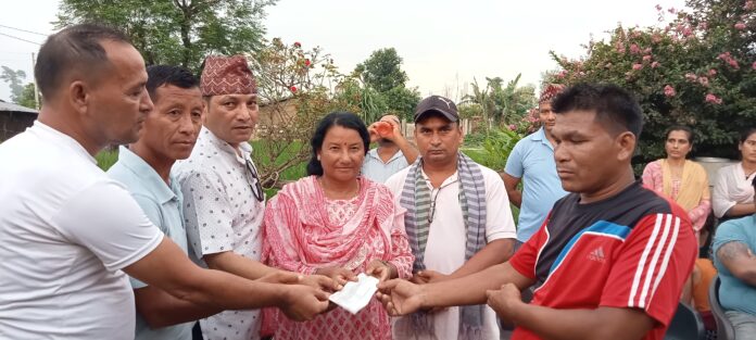 दोधारा । दोधारा चाँदनी नगरपालिकाका वडाध्यक्ष केशव खत्रीले थालेको ‘भण्डारी बचाउ अभियान’ मा संकलित रकम हस्तान्तरण गरिएको छ् । दोधारा चाँदनी नगरपालिका– ५ का वडाध्यक्ष केशव खत्रीले संचालन गरेका रमा देबी भण्डारीको उपचार खर्च संकलन अभियानमा संकलित रकम हस्तान्तरण गरिएको रमा देबी भण्डारीका श्रीमान डम्मर सिंह भण्डारीले जानकारी दिएका छन् । रमा देबि भण्डारी झण्डै २ वर्ष देखि मुटुको समस्याबाट ग्रसित छन् । आर्थिक अवस्था दैनिय रहेको रमाको उपचारको लागी वडाध्यक्ष केशव खत्रीले बृहतरुपमा ‘भण्डारी बचाउ अभियान’ संचालन गरि रकम संकलन गरेका हुन् । ‘भण्डारी बचाउ अभियान’ संचालन गरेर रमा देबीको उपचारको लागी रु. ५ लाख ३९ हजार ३ सय ९ रुपिँया संकलन भएको वडाध्यक्ष खत्रीले जानकारी दिएका छन् । देश, बिदेशमा रहेका नेपाली दाजुभाईहरुले ‘भण्डारी बचाउ अभियान’ मा सघाएको उनले बताएका छन् ।