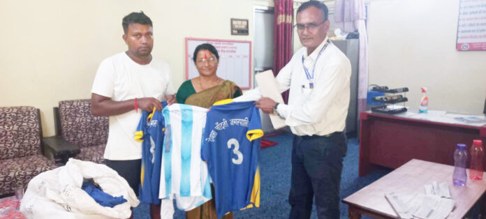 दोधारा । दोधारा चाँदनी नगरपालिकाका नगरउपप्रमुख गंगा देबी जोशीले फुटवल खेलाडीलाई पोशाक हस्तान्तरण गरेका छन् । दोधारा चाँदनी नगरपालिकाका नगरउपप्रमुख गंगा देबी जोशीले फुटवल खेलाडीहरुलाई १४ थान पोशाक हस्तान्तरण गरेका हुन् । कञ्चनपुरको बेल्डाँडीमा अलिष्टार युवा क्लवको आयोजनामा संचालन हुने खुला नकआउट फुटवल प्रतियोगितामा दोधारा चाँदनी नगरपालिकाका खेलाडी सहभागी हुन गईरहेको हुदा उनिहरुको खेल पोशाक उपलब्ध गराईएको दोधारा चाँदनी नगरपालिकाका नगरउपप्रमुख गंगा देबी जोशीले बताएका छन् ।