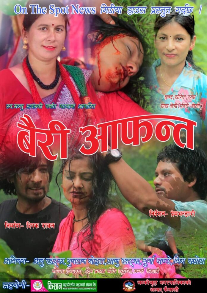 कञ्चनपुर : सुदूरपश्चिम प्रदेशको कैलाली जिल्लाको लम्की चुहा नगरपालिका–४ भल्काकी ३३ वर्षीया मञ्जु रावलको घटनामा आधारित “बैरी आफन्त ” म्युजिक भिडियो आज सार्वजनिक हुँदै छ।