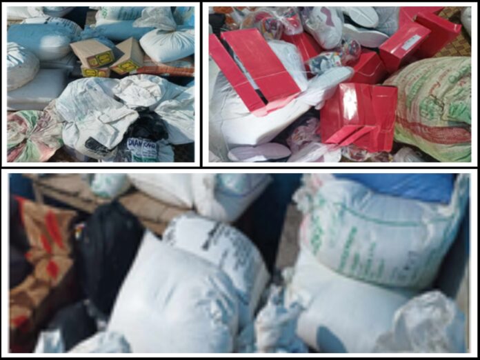 विहीबार बेलुका ५ बजेको समयमा भन्सार छलेर ल्याएका बेवारिसे रु. तिन लाख छयालिस हजार पाँचसय पैसठ्ठी बराबरका चिनी, नरिवल, तेल, सलाई, मिश्री, लेडिज जुत्ता चप्पल, गुड, बिडी, सुर्ती लगायत बिभिन्न किसिमका सामान फेला पारेको जिल्ला प्रहरी कार्यालयका सूचना अधिकारी प्रहरी निरीक्षक पुस्कर राज पन्तले बताए ।
