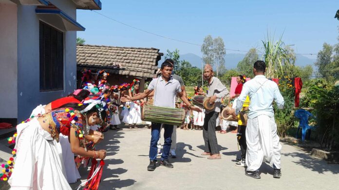 थारु समुदायले सखिया नाच नाचेर आफनो परम्पराको जेगर्ना
