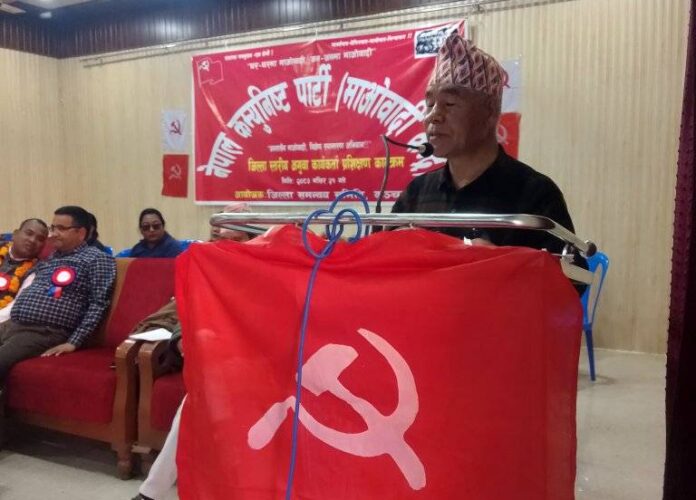 कञ्चनपुर : नेकपा माओवादी केन्द्र कञ्चनपुरले नेता कार्यकर्ताहरुलाई प्रशिक्षण दिएको छ । पाटीको अभियानको समिक्षा सहित नेता कार्यकर्ताहरुलाई प्रशिक्षण दिएको हो । माओवादी केन्द्र कञ्चनपुर जिल्ला समन्वय समितिले बिहीबार महेन्द्रनगरमा वैचारिक राजनैतिक प्रशिक्षण कार्यक्रम राखेर नेता कार्यकर्ताहरुलाई समसामयिक राजनीतिक विषयमा प्रशिक्षित गरेको छ । नेकपा माओवादी केन्द्र कञ्चनपुरका संयोजक खेमराज पाण्डेयले जनतासंग माओवादी विशेष रुपान्तरण अभियान अन्र्तरगत वैचारिक राजनैतिक प्रशिक्षण कार्यक्रम राखेको बताए । संयोजक पाण्डेले अभियानको समिक्षा सहित नेता कार्यकर्ता समसायिक विषयमा प्रशिषण दिएको बताए ।