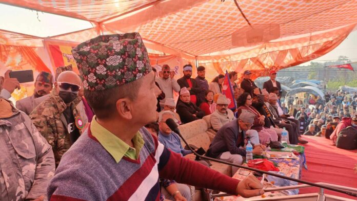 ‘प्रदेश संरचना खारेजी गर्नुपर्छ, सम्वैधानिक राजतन्त्र पुर्नस्थापना गर्नुपर्छ, ‘उनले भने, ‘त्यसपछि सबै बेथिति, समस्या समाधान हुन्छन ।’ राप्रपा कञ्चनपुरका अध्यक्ष गजेन्द्र बहादुर चन्दले महेन्द्र राजाले बर्माबाट ल्याएर राखेकै मानिसहरुलाई राजाले लगाएको गुन भुलेको बताए । अध्यक्ष चन्दले महेन्द्रनगरको जग बसाल्नेदेखि बर्मेलीहरुलाई जमिन, घडेरी खाद्यान्न दिदा समेत गुन बिर्सिएको बताए । कार्यक्रममा राप्रपाका जिल्लादेखि, केन्द्रका नेताहरुले महेन्द्रराजाको सालिक पुर्नस्थापनामा ८ दलको बिरोधले सालिक पुर्नस्थापना अहिले नभएपनि भावि दिनमा गर्ने घोषणा गरेका छन । कार्यक्रममा सयौँले राप्रपा प्रवेस गरेका छन ।