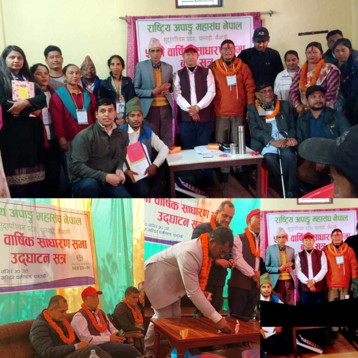 कञ्चनपुर: धनगढी उपमहानगरपालिका एलएन चोक कृष्ण मन्दिरको धर्मशालामा राष्ट्रिय अपाङ्ग महासंघ नेपाल सुदूरपश्चिम प्रदेशको ५ औं साधारणसभा भब्यताका साथ सम्पन्न भएको छ।