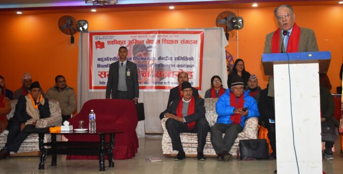 कार्यक्रममा नेकपामाओवादी केन्द्रकामहासचिव देव गुरुङले शिक्षकमा समस्या रहेसम्मशिक्षा सुधार नहुने भन्दै शिक्षकका समस्या समाधान गरी उनीहरुलाई पेशाप्रतिउत्तरदायीबनाउनुपर्नेमाजोड दिए । उत्पीडित शिक्षककामागहरु पूरा गर्दै राज्यले शिक्षण पेशाप्रतिआकर्षण र आत्मविश्वासको वातावरण सिर्जना गर्नुपर्ने उनको भनाइथियो । यसैगरी माओवादी केन्द्रकाउपाध्यक्षएवं पूर्व सभामुखअग्नीप्रसाद सापकोटाले शिक्षककामागपुरा गर्दै राज्यले उनीहरुलाई शिक्षणसँगै खोज, अनुसन्धान र अविष्कारमालगाउनुपर्ने बताए । अध्ययन, खोज र सिकाइजीवनपर्यन्त चलिरहने भन्दै सापकोटाले शिक्षकहरुलाई पनि शिक्षणसँगै अध्ययन र अनुसन्धानमा केन्द्रितहुनआग्रह गरे । एकीकृत अखिल नेपालशिक्षक संगठन(युएण्टो)का अध्यक्षशंकर अधिकारीले संसदमाविद्यालयशिक्षाविधेयकमाथि छलफल शुरु हुनलागेकाले शिक्षकहरुले हस्तक्षेपकारी भूमिकानिर्वाह गर्नुपर्ने आवश्यकताऔंल्याए ।