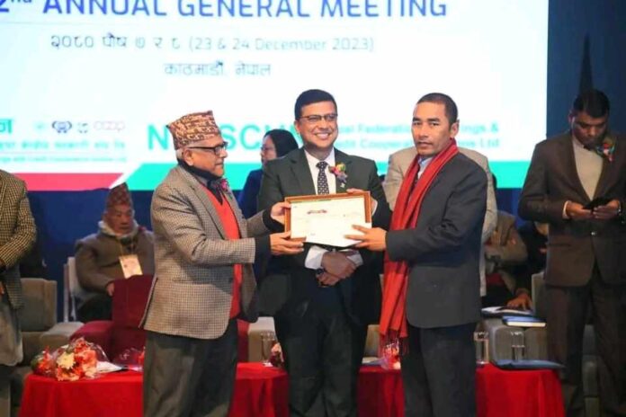 नेफ्स्कून प्रदेश स्तरीय उत्कृष्ट व्यवस्थापकमा सृर्जना बचत तथा ऋण सहकारी संस्था लि. दोधारा चाँदनीका व्यवस्थापक नयन सिह ठगुन्ना सम्मानित