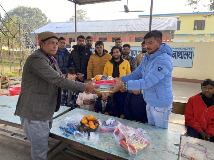 नेकपा माओवादी केन्द्र निकट क्रान्तिकारी कञ्चनपुर संयोजक विद्यार्थी नेता विष्टले मंगलबार भीमदत्त नगरपालिका ४ महेन्द्रनगर स्थित रहेका समाजकल्याण बाल अनाथालयमा बस्दै आएका बालबालिकालाई शैक्षिक समाग्री तथा फलफुल खाद्यान्न वितरण गरेका छन । फजुल खर्च भन्दा बेसाहरा अनाथ बालबालिकाको पढाईमा टेवा पु¥याउने उदेश्यका साथ कापि, कलम, फलफुल तथा मिठाई वितरण गरिएको क्रान्तिकारी कञ्चनपुरका संयोजक विष्टले बताए ।