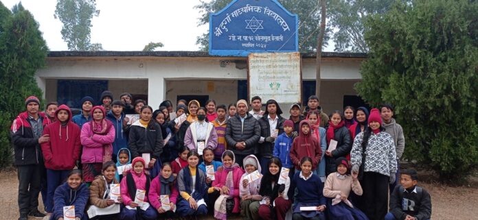 अत्तरिया : आफन्त नेपालको आयोजनामा बिद्यार्थिहरुलाई सचेतना अभिबृद्धि कार्यक्रम आईतबार सम्पन्न गरिएको छ । गोदावरी नगरपालिकाको वडा नं. १२ मा रहेको श्री दुर्गा माध्यमिक बिद्यालय कोल्मुडामा कक्षा ९ र १० मा अध्ययनरत किशोर किशोरी बिद्यार्थिहरुलाई ‘मानव बेचबिखन र बाल श्रमशोषण बिरुद्ध रिपोर्टिगं केसहरुको लागी “सचेतना अभिबृद्धि कार्यक्रम” गरिएको हो ।